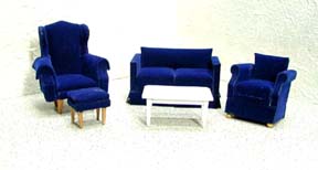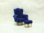Wing Chair w/stool - Blue